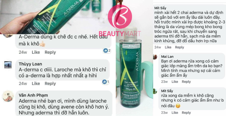 Review của khách hàng khi dùng Sữa Rửa Mặt A-derma Gel Moussant Purifiant Phys-AC Cho Da Mụn Nhạy Cảm
