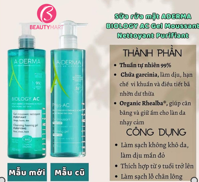 Sữa Rửa Mặt A-Derma cho da mụn, da nhạy cảm mẫu mới và mẫu cũ