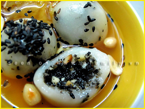 Nhân sủi dìn làm bằng nhân vừng đen rang chín, giã nhuyễn cùng với dừa nạo.