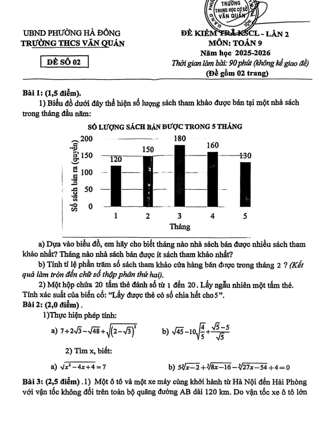 Đề kiểm tra KSCL lần 2 Toán 9 năm 2025 – 2026 trường THCS Văn Quán – Hà Nội 16/12/2025