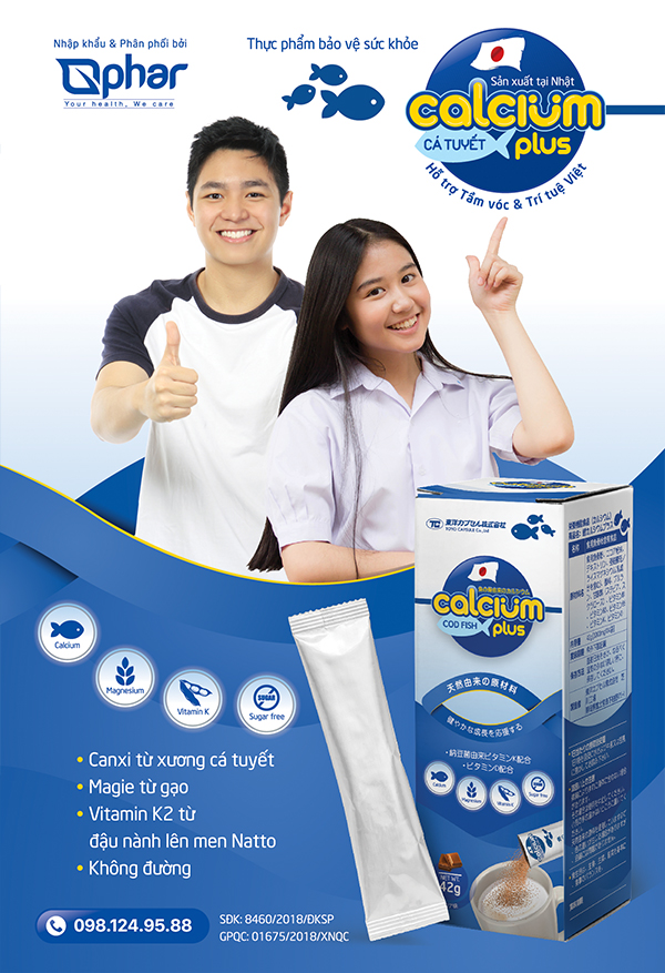 Canxi cá tuyết plus là sự kết hợp của canxi có nguồn gốc hoàn toàn từ cá tuyết Nhật Bản, được khai thác ở độ sâu 900m ở Đại Tây Dương, kết hợp với magie (chiết xuất từ màng gạo nâu), vitamin D3 và K2 (chiết xuất từ đậu nành lên men natto) và các vitamin nhóm B