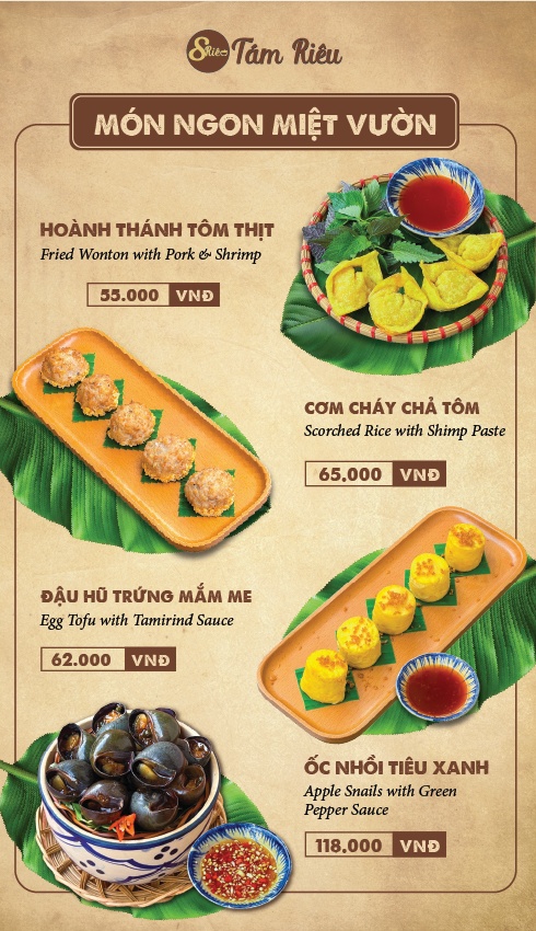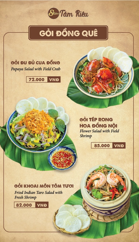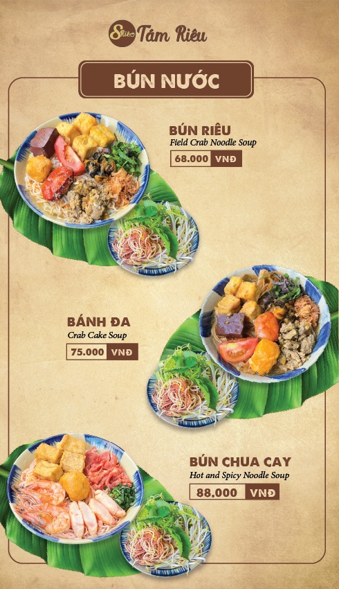 Tám Riêu Món ngon từ cua đồng Thực đơn