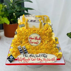 Bánh sinh nhật tạo hình 3d cọc tiền đôla và vàng 2 tầng độc đáo tặng sếp