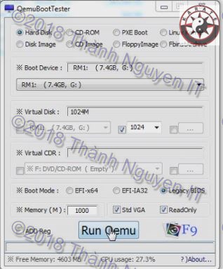 Kết thúc tạo usb boot Bước 9: Chạy công cụ QemuBootTester để test usb xem đã tạo thành công chưa.