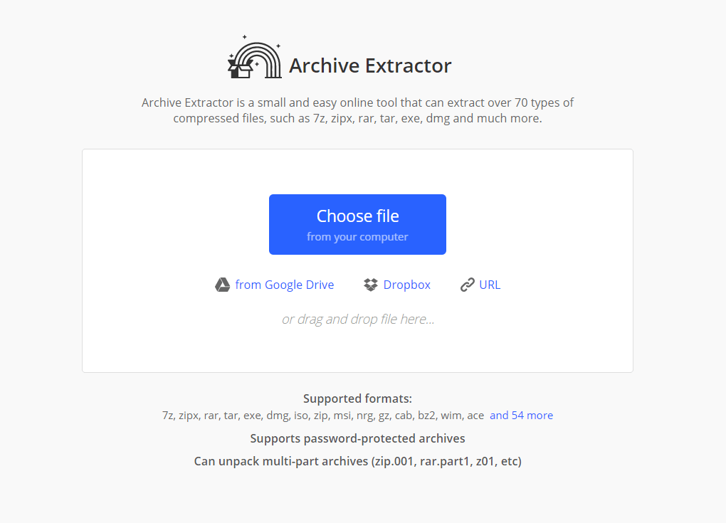 - Đối với hướng dẫn này, chúng tôi sẽ sử dụng Archive Extractor, mặc dù bạn có thể sử dụng bất kỳ công cụ trực tuyến nào khác. Truy cập trang web để bắt đầu.