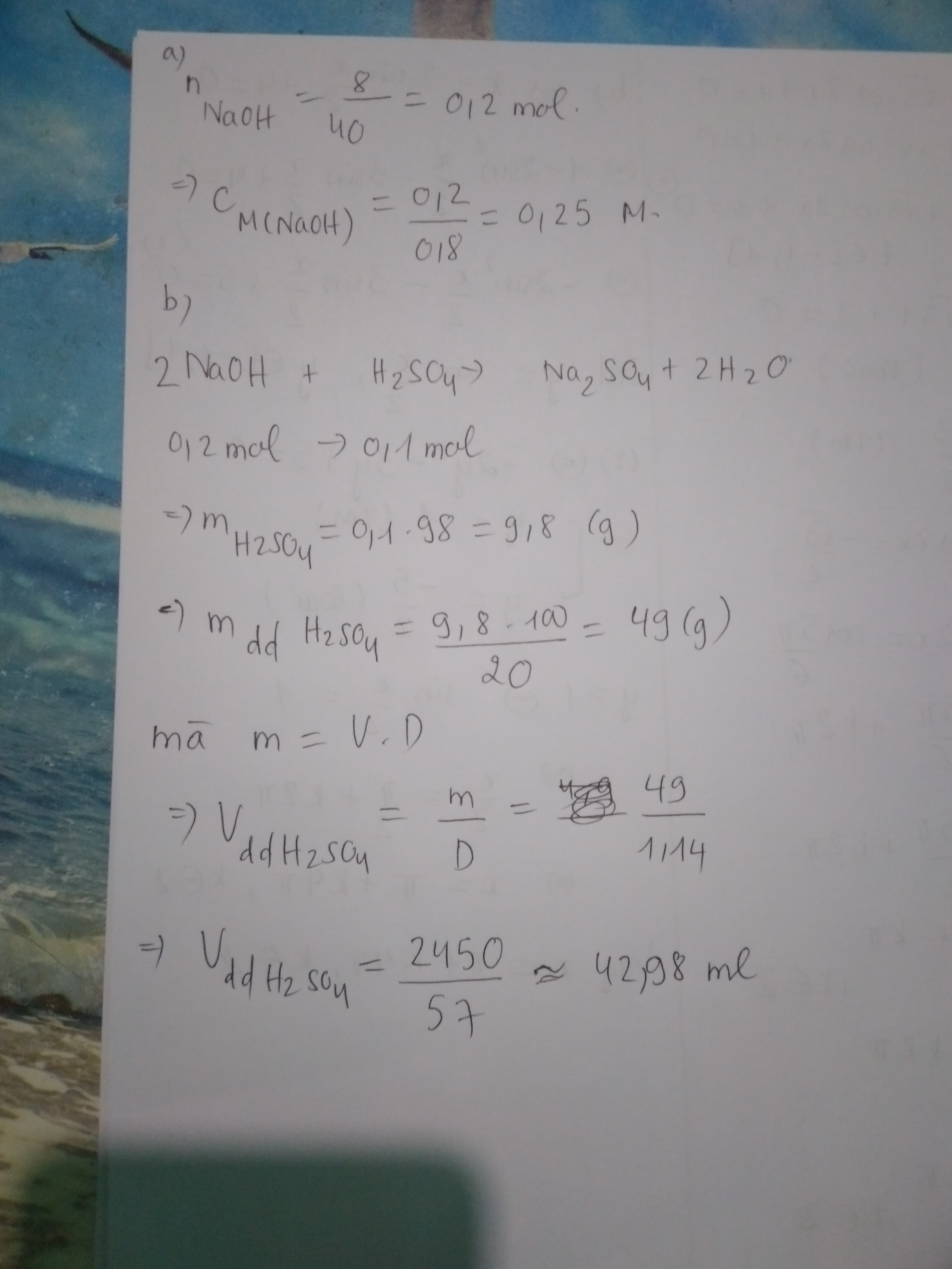 Trong 800ml Của Một Dung Dịch Có Chứa 8g NaOH. A) Tính Nồng độ ...