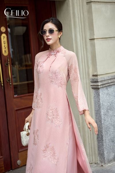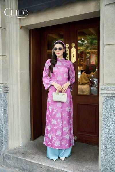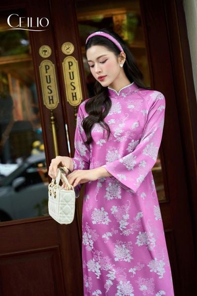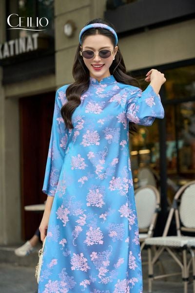 new -10% AD563 Áo Dài Hoa Mẫu Đơn