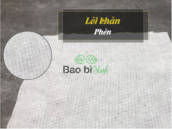 Lõi khăn là phần tiếp xúc trực tiếp với người sử dụng, thường được làm từ vải không dệt, ngấm nước nhanh và không xù, không kích ứng da.