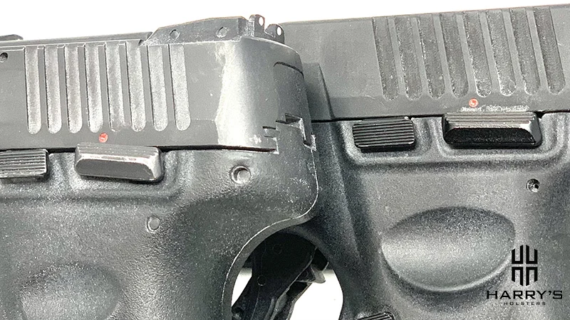 You’ll find the rear serrations to be identical and one thing that Taurus did really well was adding a draft angle to the front of the slide.