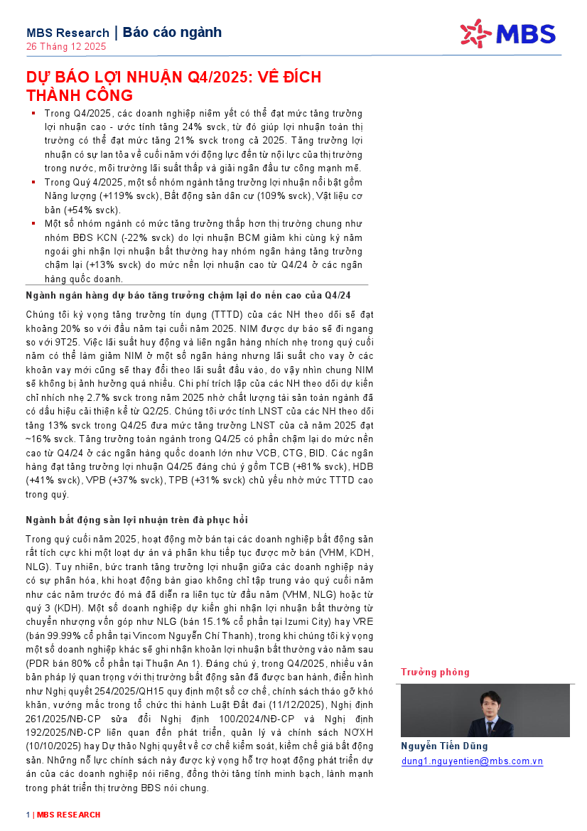 Báo cáo ngành: Dự báo lợi nhuận Q4/2025 - Về đích thành côngNguồn: MBS Tải về 26/12/2025 |