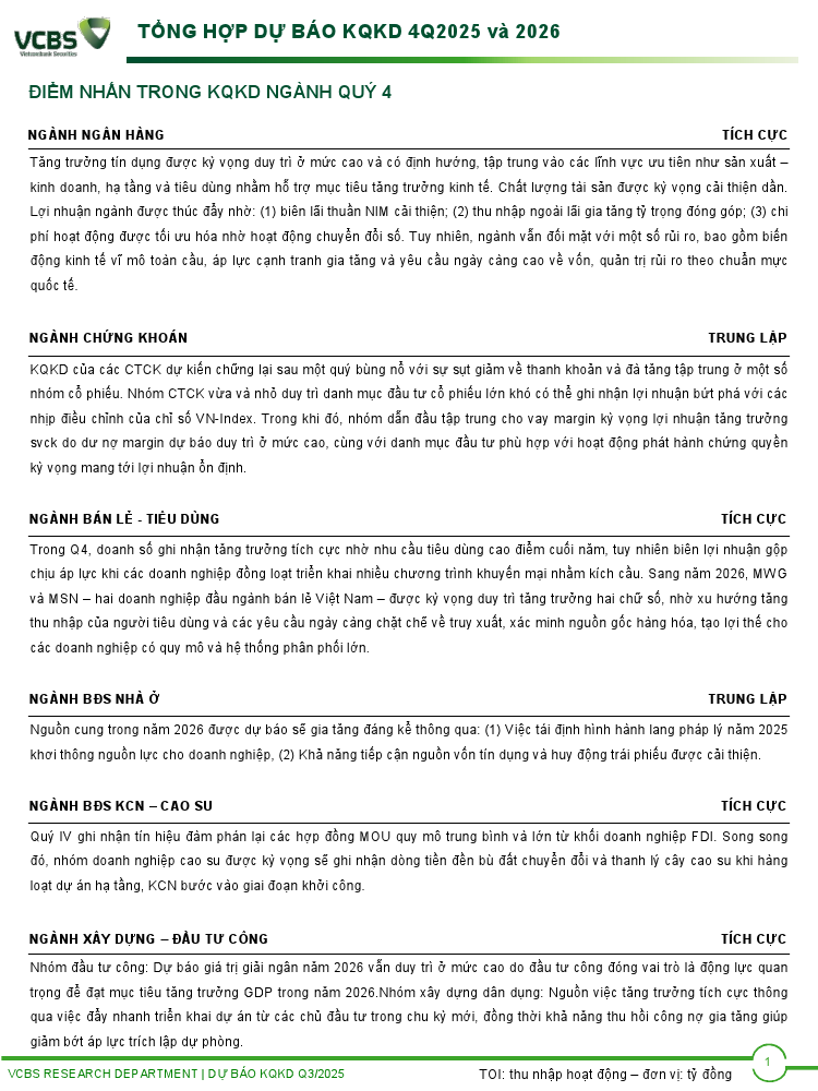 Báo cáo ngành: Dự báo KQKD 4Q2025 và 2026Nguồn: VCBS Tải về 29/12/2025 |