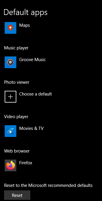 - Chọn mặc định bạn muốn đặt và chọn ứng dụng. Bạn có thể chọn các ứng dụng mới trong Microsoft Store, nhưng bạn phải cài đặt chúng trước khi đặt chúng làm ứng dụng mặc định.
