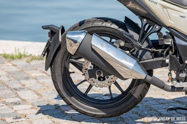 As suspensões com a sua afinação suave garantem uma filtragem muito boa das irregularidades do asfalto. Nem mesmo as irritantes lombas de velocidades causam incómodo. Aqui também devo dar crédito ao assento generosamente recheado de esponja mole. Numa estrada de curvas convém refrear um pouco o andamento pois as suspensões não se dão bem com o “stress” das trocas de direção rápidas. A NH-X mostra-se mais adaptada a estradas abertas e a ritmos descontraídos, brilhando pela excelente estabilidade em linha reta. Do ponto de vista prático, a SYM NH-X 125 apresenta alguns detalhes bem interessantes e que por vezes motos com preços mais elevados não oferecem aos seus proprietários: o descanso central é de série, permitindo limpar e lubrificar facilmente a corrente. E para quem precisa de manter o telemóvel ou outro aparelho eletrónico carregado, então a ficha USB, posicionada mesmo à frente do bocal do depósito de combustível, vai ser o melhor amigo.
