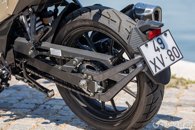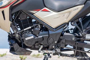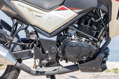 Se é verdade que a SYM trabalhou bem ao nível estético e criou uma moto totalmente nova, o mesmo não se pode dizer do motor. A unidade motriz que equipa a NH-X 125 é precisamente o mesmo monocilíndrico que conhecemos da Wolf, e que existe desde 2011! Foi, obviamente, sendo atualizado ao longo dos anos. Em 2017 passou a contar com injeção eletrónica para cumprir com as normas Euro4. A sua performance fica áquem do limite dos 15 cv. Na realidade a NH-X apresenta-se ao serviço com os seguintes números: 10,2 cv às 8000 rpm e 9,5 Nm às 6500 rpm. Não se expressa particularmente bem a baixas rotações. É preciso espevitar este monocilíndrico e levá-lo para lá das 6000 rpm para sentir a puxar. A gama de rotações em que o devemos manter não é muito grande: entre as 6000 e as 8000 rpm. Tudo o que seja abaixo ou acima desta pequena faixa é perda de tempo. É por isso necessário aprender a explorar a transmissão com caixa de apenas 5 velocidades, bastante longas por sinal, o que por sua vez obriga a trocar de caixa mais vezes para manter as rotações no regime ideal. E por falar em caixa, a unidade testada apresentava um seletor com uma folga bastante grande. Mesmo depois de afinado, ficou melhor, mas ainda assim obriga a fazer um movimento de rotação com o pé esquerdo muito pronunciado para garantir que a caixa passa de relação e não fica em ponto-morto.
