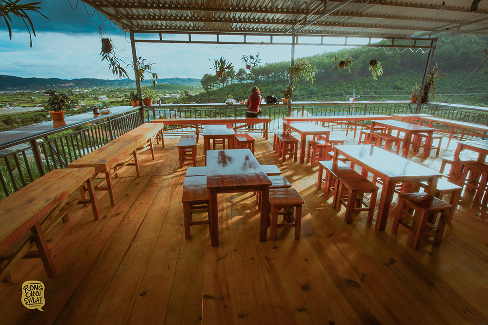 Được thiết kế bởi không gian mở và thoáng đãng. Từ vị trí này các bạn có thể nhìn ngắm toàn bộ khung cảnh rừng núi hùng vĩ từ trên cao và thỏa sức sáng tạo cho mình thật nhiều bức ảnh đẹp. Thời gian hoạt động của quán từ 7h - 19h.