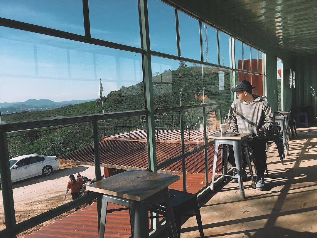 Đặc biệt, giữa đồi chè mọc lên một quán cafe container cực kì bắt mắt, thu hút sự chú ý của du khách.. Ảnh: To Hai Yen on Instagram