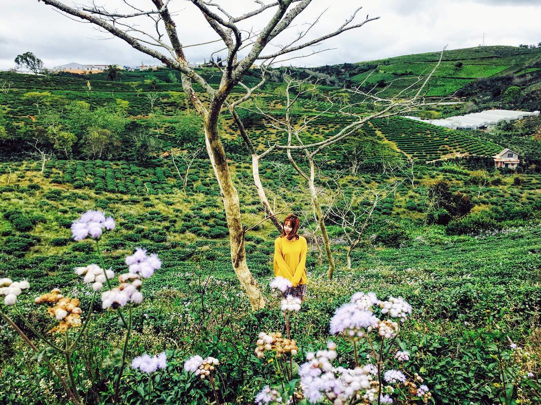 Đồi chè Cầu Đất miễn phí cho khách tham quan nhưng quý khách lưu ý nên hỏi ý kiến công ty chè Cầu Đất cũng như cẩn thận trong quá trình tham quan để không làm hỏng chè. Ảnh: Sứa on Instagram.
