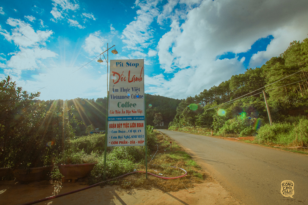 Để đến quán cafe Dốc Lạnh không quá khó, bạn cứ chạy thẳng đường đèo Tà Nung (cung đường quốc lộ 725), khi xuống hết đèo bạn nhìn bên tay Trái đường sẽ thấy bảng này nhé.
