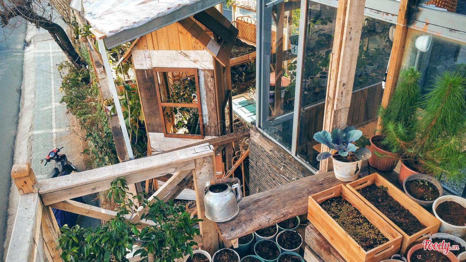 Từ khu vườn nhỏ bên ngoài cho đến chiếc bàn, kệ hay các lối đi bạn đều bắt gặp nhiều loại rau cải. Điều này đã làm nên sự đặc biệt thu hút thực khách tìm đến quán. Anaechill C. on Instagram