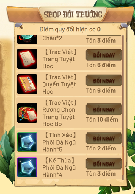 - Đại hiệp còn có thể dùng điểm tích lũy nhận được tự chọn quà để đổi vật phẩm tại cửa hàng điểm.