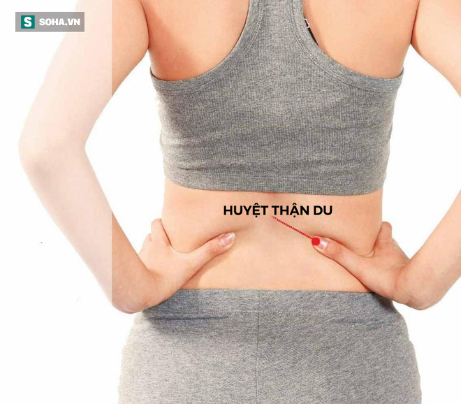 Huyệt Thận du: Lấy đối xứng từ rốn ra sau lưng một vị trí, trên cột sống đó là huyệt Mệnh môn, sau đó kéo ra hai bên mỗi bên khoảng 1,5 thốn là gặp huyệt Thận du.