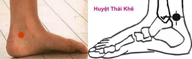 Dùng ngón tay cái của tay phải ấn nhẹ vào huyệt Thái khê chân trái và ngược lại, dùng lực sao cho cảm thấy có cảm giác là vừa. Tùy thời gian của bạn, có thể ấn từ 3-5 phút hoặc hơn.