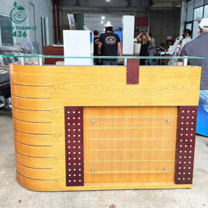 Quầy Lễ Tân Gỗ Cũ 1Mx50CMx1M14 Bo Cong Mặt Kính