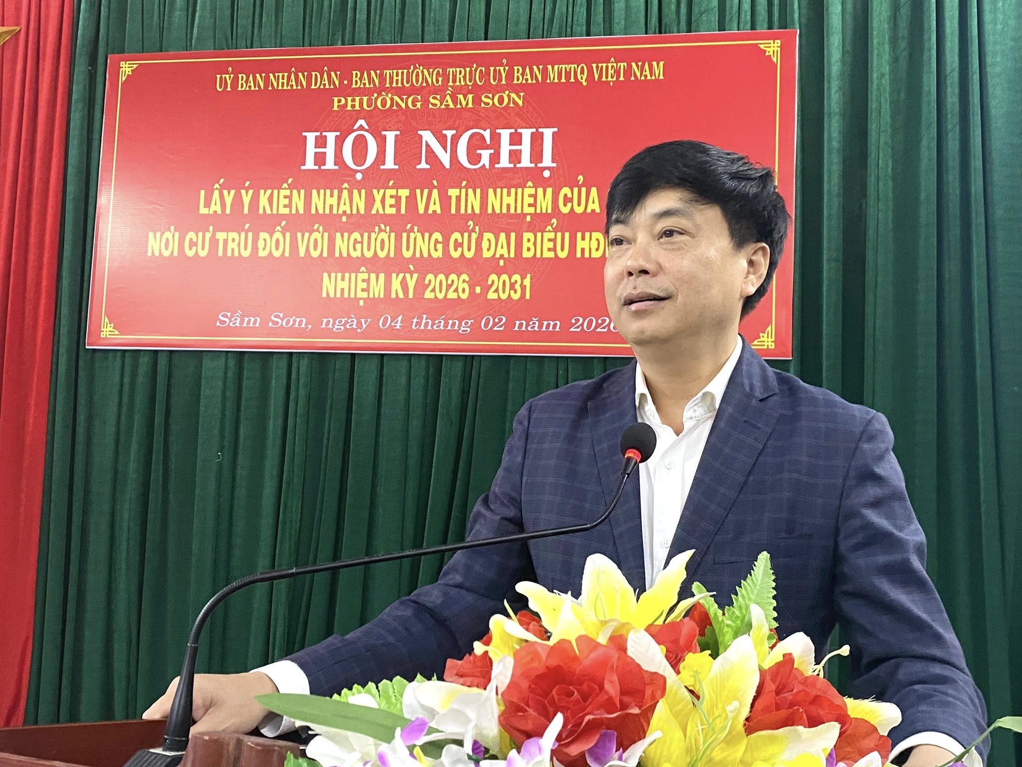Lấy ý kiến cử tri nơi cư trú đối với người ứng cử đại biểu HĐND các cấp nhiệm kỳ 2026 – 2031 tại... Thực hiện Luật Bầu cử đại biểu Quốc hội và bầu cử đại biểu HĐND, tối 4/2, tại Nhà văn hoá TDP Văn Phú, Ban Thường trực Ủy ban Mặt trận Tổ quốc (MTTQ) Việt Nam phường Sầm Sơn và UBND phường phối hợp tổ chức Hội nghị lấy ý kiến nhận xét và tín nhiệm của cử tri nơi cư trú đối với người ứng cử đại biểu... - Hội nghị lấy ý kiến nhận xét và tín nhiệm của cử tri nơi cư trú đối với những người ứng cử đại biểu...