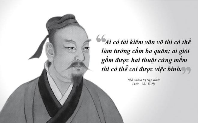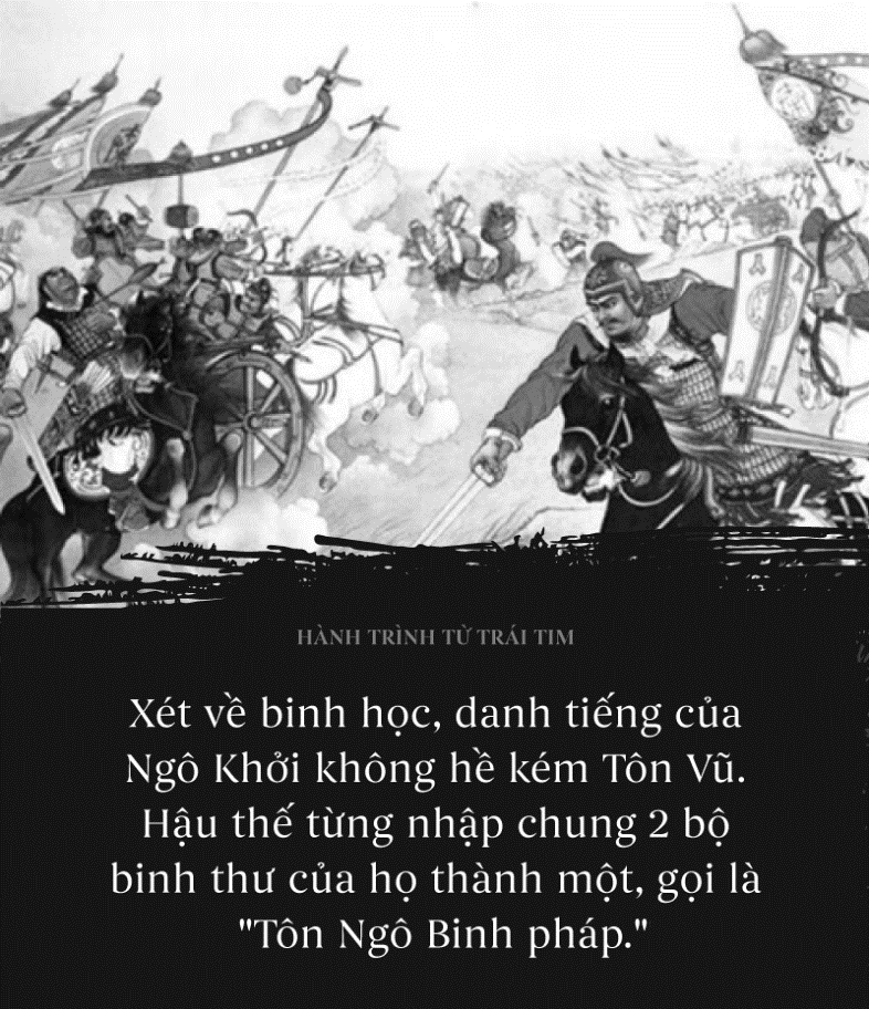 Ngô Khởi (440 – 381 TCN) - nước Vệ sống thời Chiến Quốc (sau Ngũ Viên và Tôn Vũ) - là nhà cải cách chính trị, chỉ huy quân đội và lý luận quân sự kiệt xuất. Xét về binh học, danh tiếng của ông không hề kém Tôn Vũ. Hậu thế từng nhập chung 2 bộ binh thư của họ thành một, gọi là "Tôn Ngô Binh pháp”. Điểm khác biệt lớn nhất giữa 2 trước tác của Tôn và Ngô là: Tôn Vũ thuần túy luận bàn từ giác độ quân sự; Ngô Khởi khi lập thuyết đã khéo léo kết nối võ bị với chính trị.