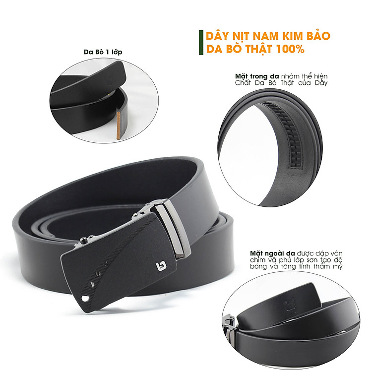 Sản phẩm Việt Nam chất lượng cao, được sản xuất bởi công ty Kim Bảo bằng nguyên liệu da cao cấp cùng kỹ thuật, công nghệ Nhật Bản, khác biệt hoàn toàn với các mẫu dây nịt với chất lượng thấp và xuất xứ không rõ ràng từ Trung Quốc trên thị trường.