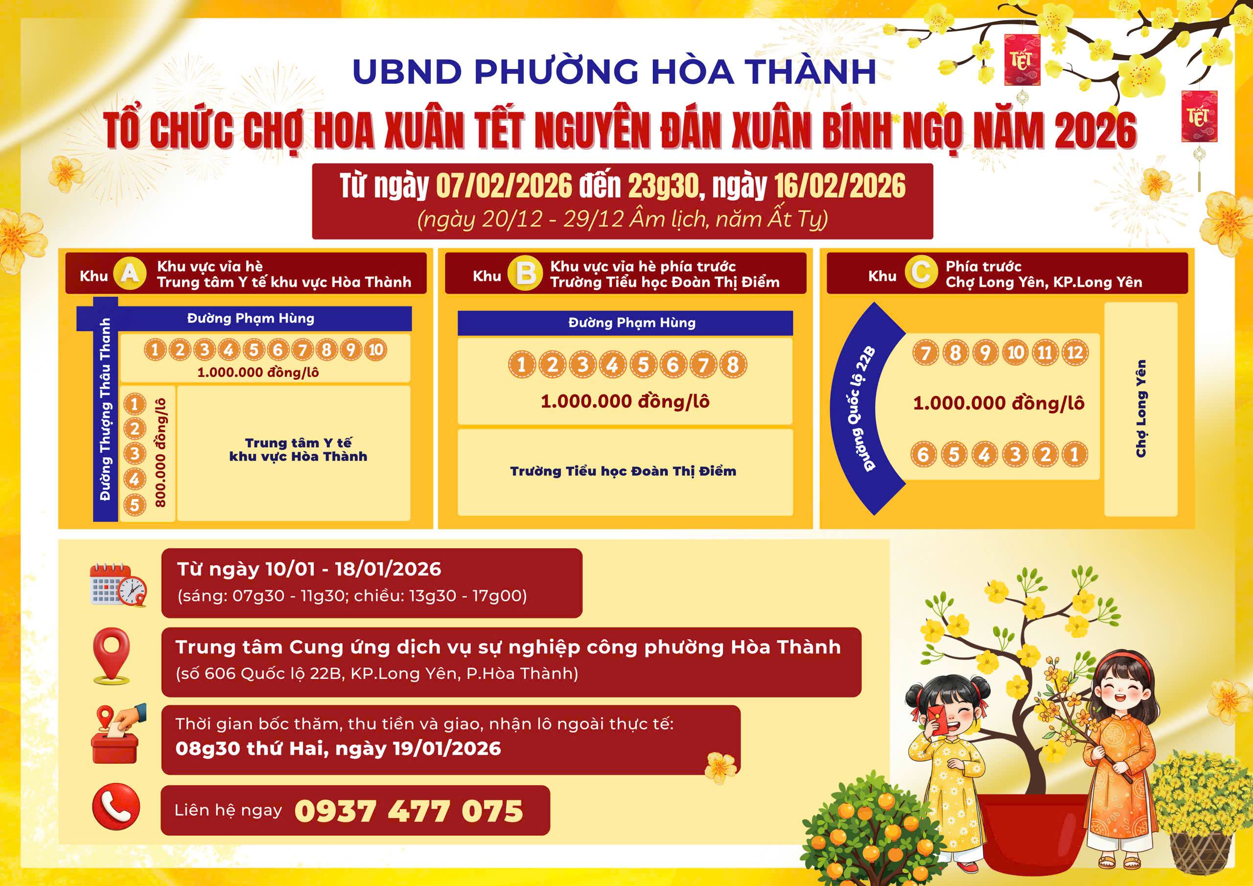 | UBND phường Hòa Thành thông báo tổ chức Chợ hoa Xuân Tết Nguyên đán Bính Ngọ năm 2026 - 02:17 Thông báo lịch tiếp công dân năm 2026