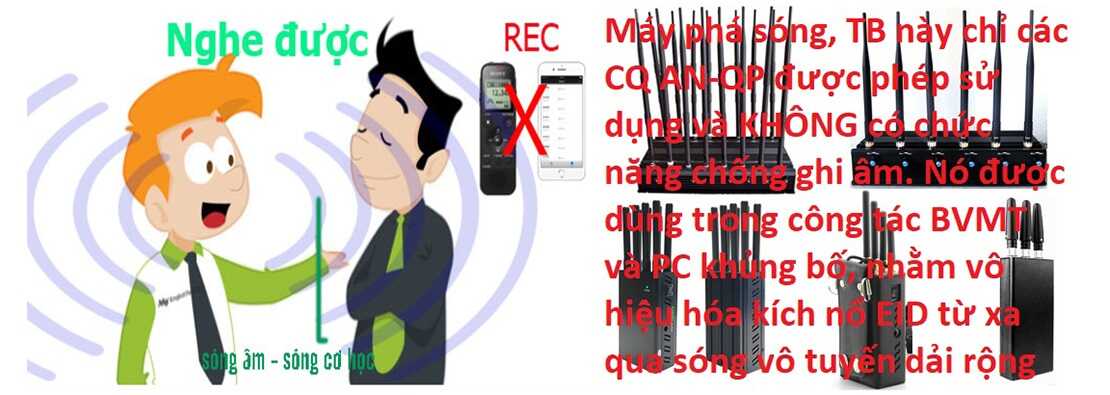 Máy chống ghi âm không phải là máy phá sóng. Các thiết bị ghi âm nó chẳng liên quan gì đến sóng vô tuyến cả, các bạn có tháo sim điện thoại hoặc bật chế độ Máy Bay thì điện thoại nó vẫn cứ ghi âm bình thường, nên hiểu là các máy phá sóng trên thị trường không hề có chức năng chống ghi âm như những shop bán hàng online rẻ tiền thiếu hiểu biết quảng cáo.