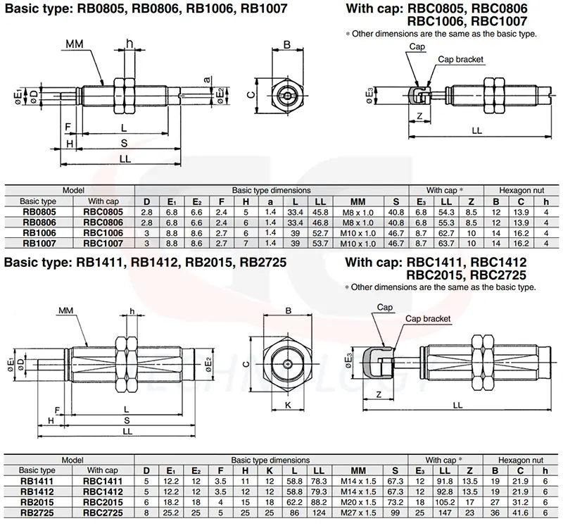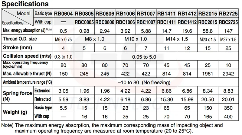 Thiết Bị Khí Nén SMC - Bộ Giảm Chấn Dòng RB