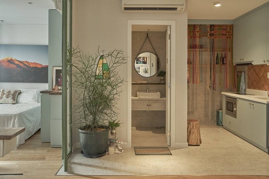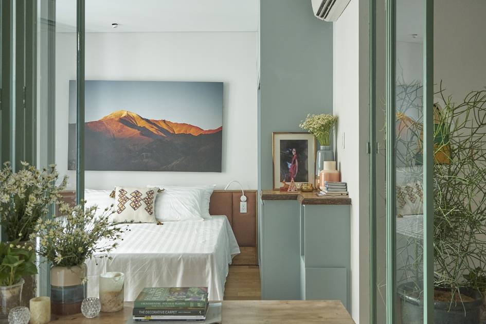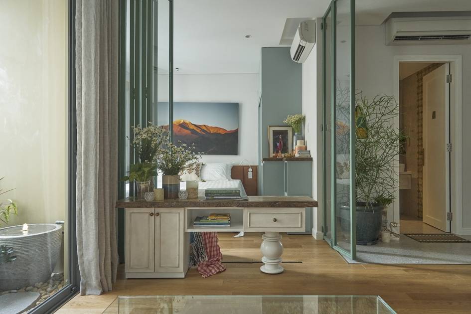 - 1. Căn hộ 46 m2 ở Sài Gòn không vách ngăn giúp các không gian như hòa làm một, trong veo, xanh mát