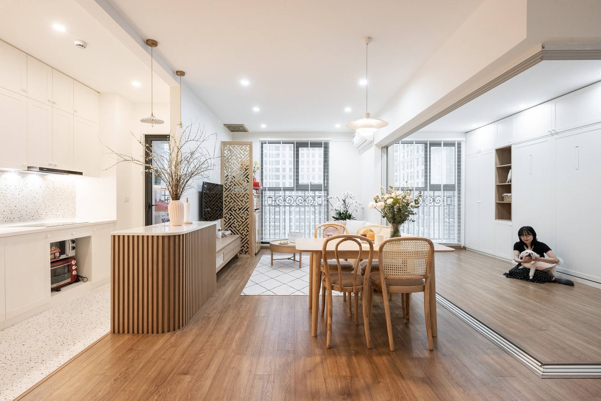 - 4. Căn hộ 95m2 hoàn thiện với chi phí 380 triệu đồng, phá bỏ 2 vách ngăn để tối ưu không gian