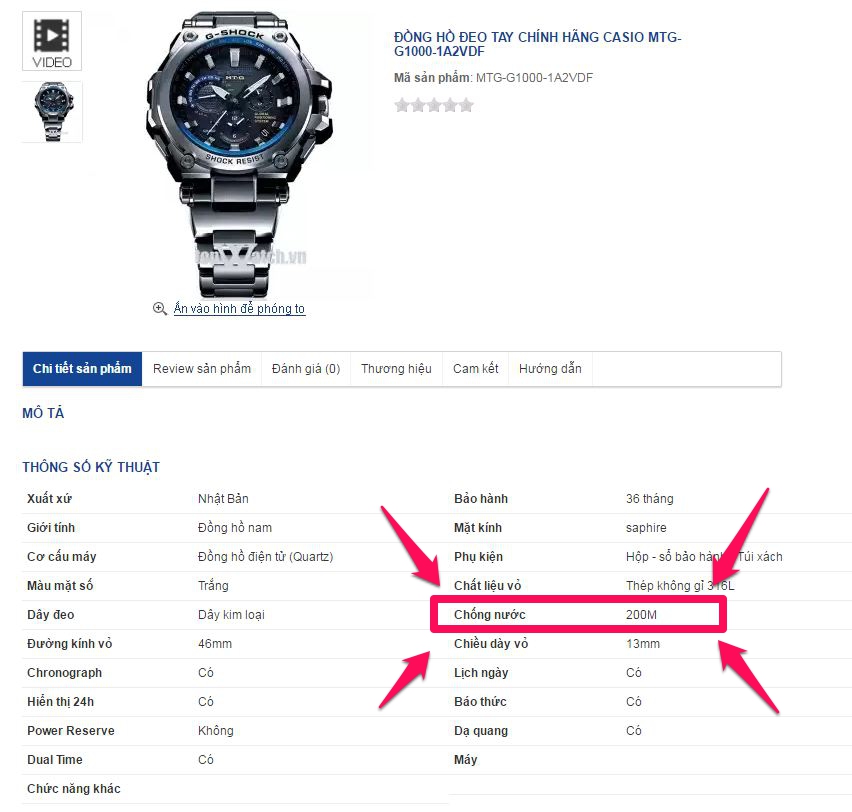 6. Đồng hồ có khả năng chống nước đến 300 m hay 30 atm hay 30 bar