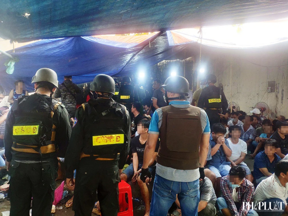 Đây là nhóm người bị Phòng CSĐT Tội phạm về Ma túy (PC04) Công an TP.HCM phối hợp với các đơn vị liên quan khống chế tại trường gà ở bãi đất trống trên đường Võ Văn Kiệt (quận 6, TP.HCM).