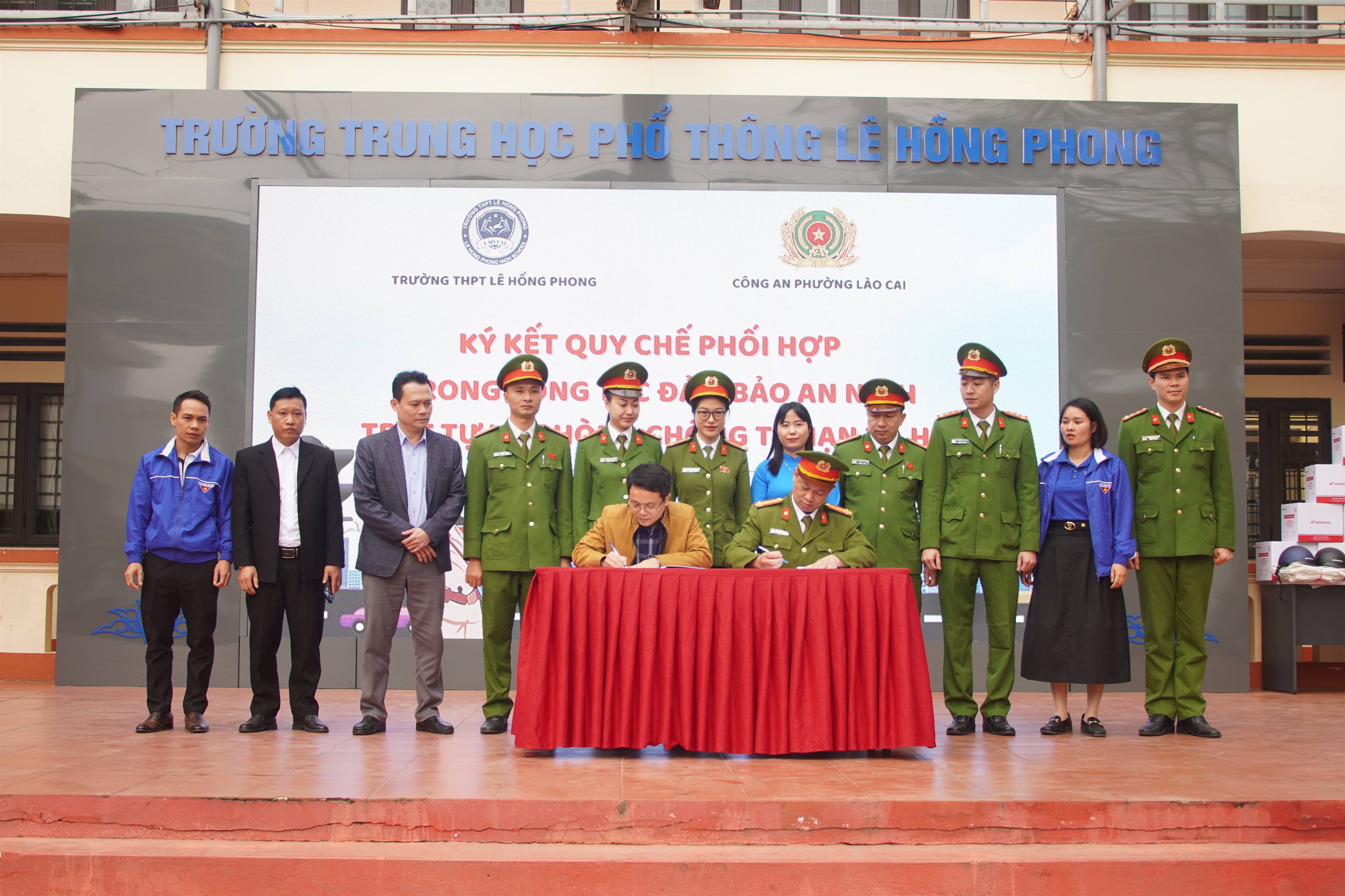 TRƯỜNG THPT LÊ HỒNG PHONG KÝ KẾT QUY CHẾ PHỐI HỢP VỚI CÔNG AN PHƯỜNG LÀO CAI TRONG CÔNG TÁC ĐẢM BẢO AN NINH, TRẬT TỰ VÀ PHÒNG, CHỐNG CÁC TỆ NẠN XÃ HỘI. -