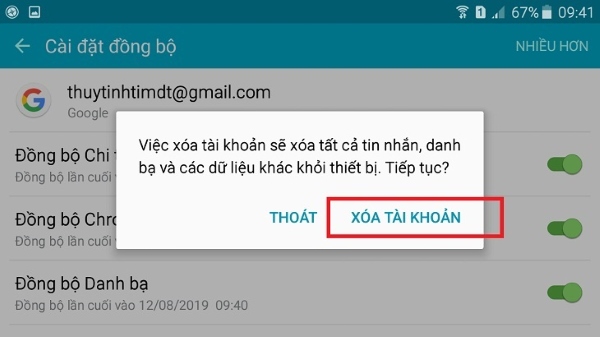 Bước 3: Cuối cùng bạn chọn Xóa tài khoản để hoàn thành cách đăng xuất tài khoản Gmail trên điện thoại Mobiistar.