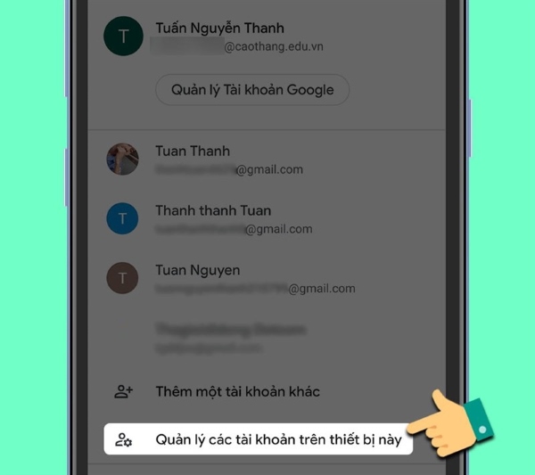 Bước 2: Kéo xuống rồi chọn Quản lý các tài khoản trên thiết bị này > chọn tài khoản muốn đăng xuất.