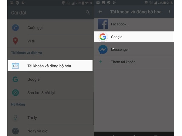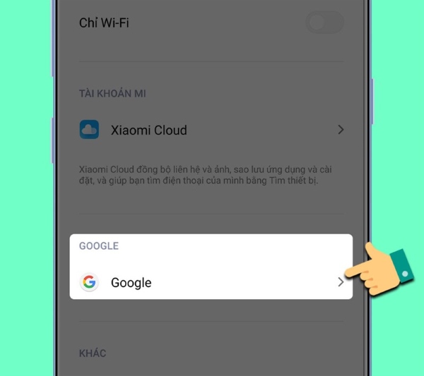 Bước 3: Chọn tiếp vào mục Google.