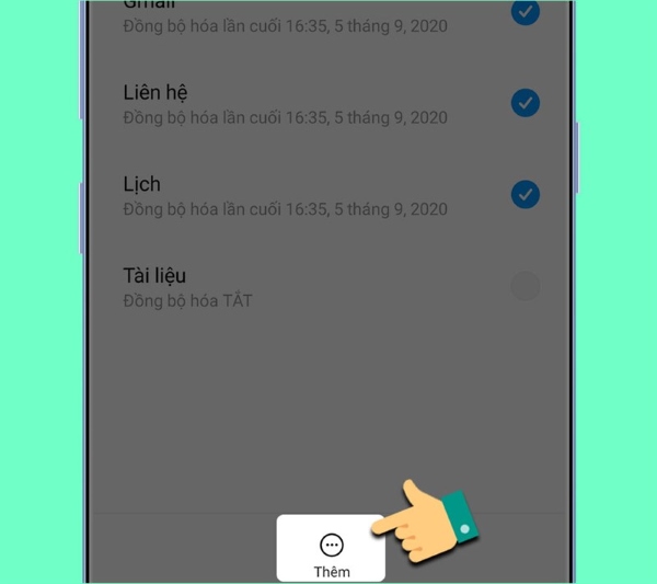Bước 4: Bạn chọn mục NHIỀU HƠN tại góc phải màn hình để bật chế độ đồng bộ tự động.