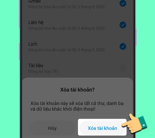 Bước 7: Cuối cùng, người dùng chỉ cần xác nhận xóa tài khoản bằng cách nhấn chọn xóa tài khoản là được. Tài khoản Gmail sau đó sẽ được xóa khỏi thiết bị của bạn.