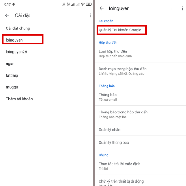 Đăng xuất Gmail trên các thiết bị Android khác
