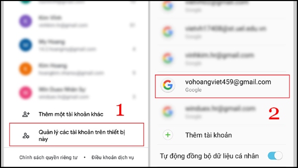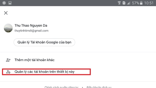Bước 2: Chọn mục Quản lý tài khoản trên thiết bị.