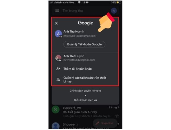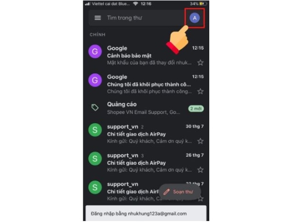 Bước 5: Khi muốn kiểm tra hoặc thay đổi giữa các tài khoản Gmail, người dùng chọn lại vào biểu tượng trang cá nhân để thấy các tài khoản được thêm vào.
