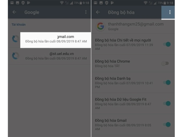 Bước 2: Chọn vào tài khoản Gmail muốn xóa > chọn dấu 3 chấm.