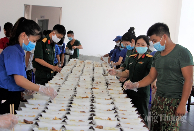 | Không quản ngại vất vả, khó khăn nhiều chiến sĩ thuộc Bộ chỉ huy quân sự tỉnh Thừa Thiên Huế, phụ nữ huyện Phú Vang đều đặn ngày 2 bữa đưa cơm vào hộp, đủ để mọi người ăn |