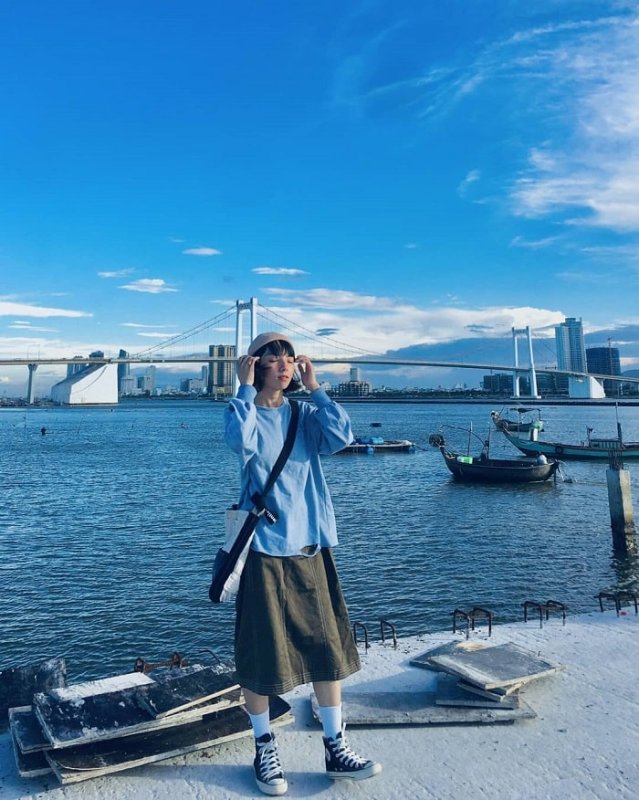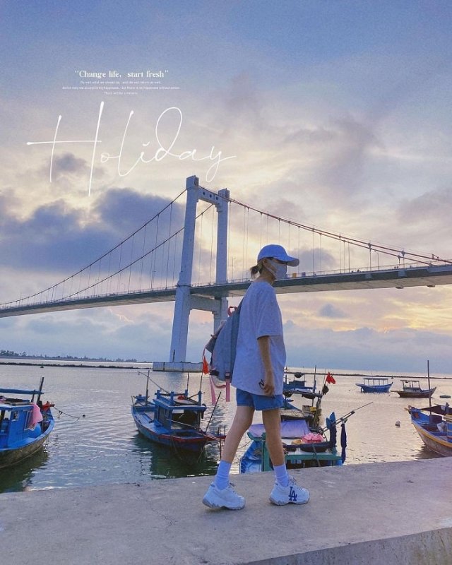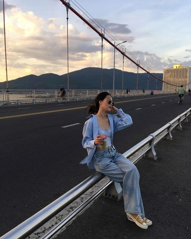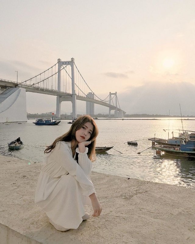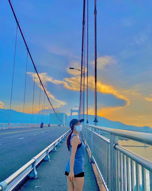 (Photo: _.linhdan._) According to Da Nang travel experience , you should visit here to check in on days with light sunshine and high blue sky. The best time is from 7:00 – 8:00 or 16:30 – 18:00. At that time, the scene at the bridge was encapsulated in two words “romantic”. This is also the time when the sea and sky are dyed an impressive orange color that makes many hearts feel nostalgic and nostalgic. Many tourists and couples often choose to come to the bridge at that time to take unique photos as a souvenir.