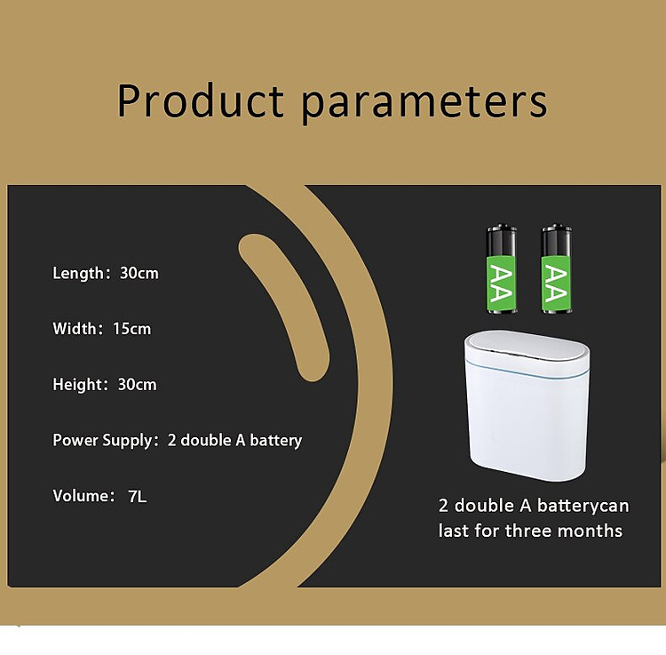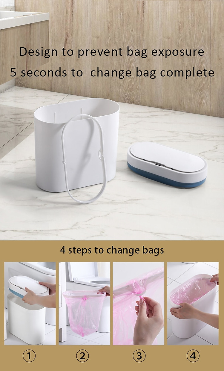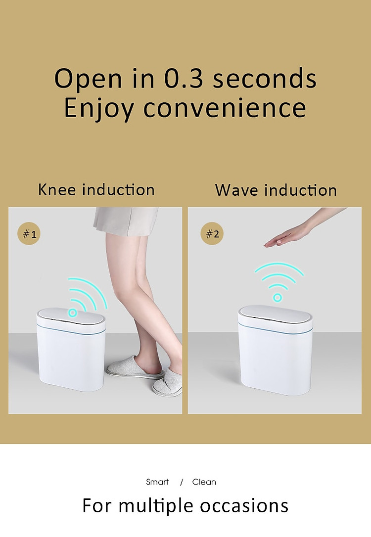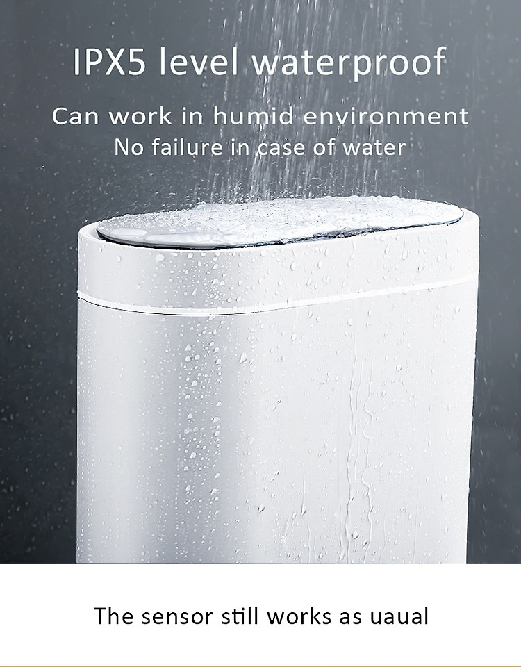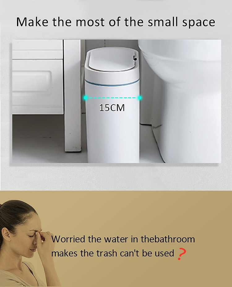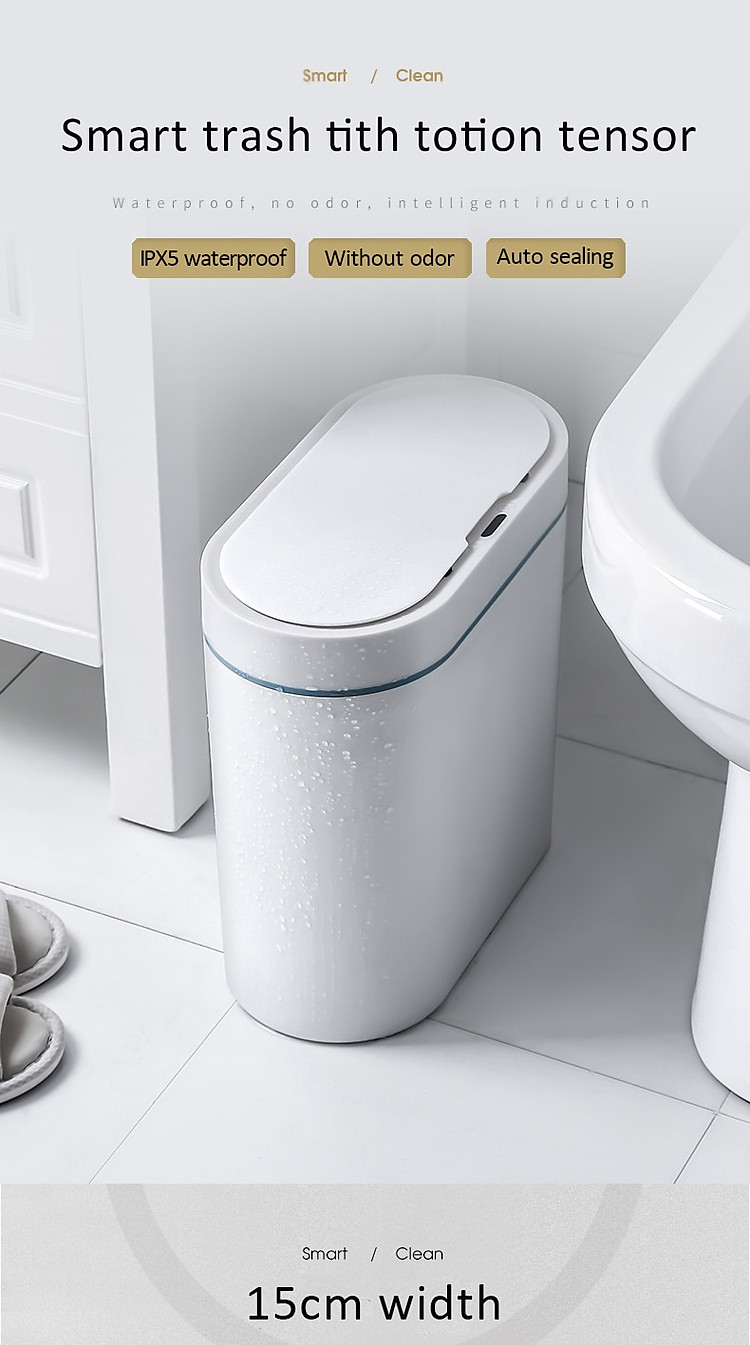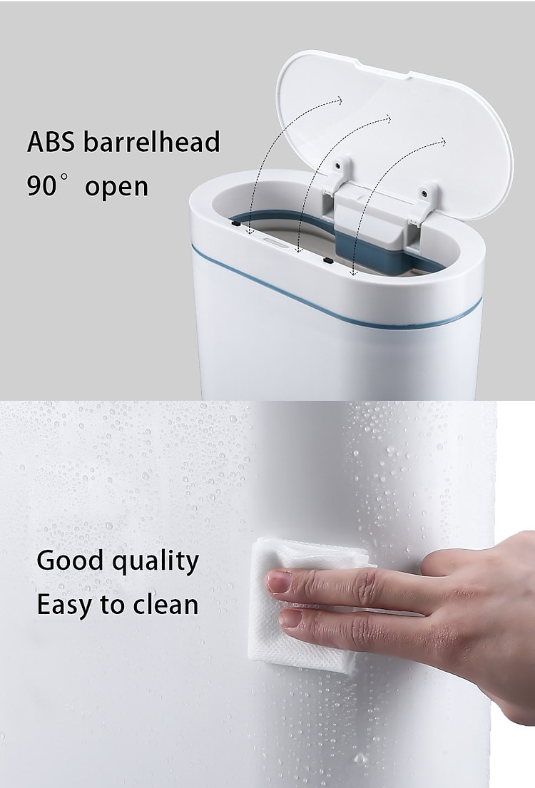tính năng của sản phẩm:1. Rộng 14cm, sử dụng hoàn hảo không gian khe hở.2. Hình thức đơn giản và đẹp.3. Mở nắp ngay bằng một cái vẫy tay, phản hồi nhanh trong 0,3 giây, không cần chờ đợi.4. Chống ẩm, không sợ nước bắn vào.5. Độ kín hơi tốt, không cho vi khuẩn gây mùi thoát ra ngoài.6. Mở im lặng, tuổi thọ pin lâu dài.7. Thiết kế vòng áp, túi không bị lộ ra ngoài.